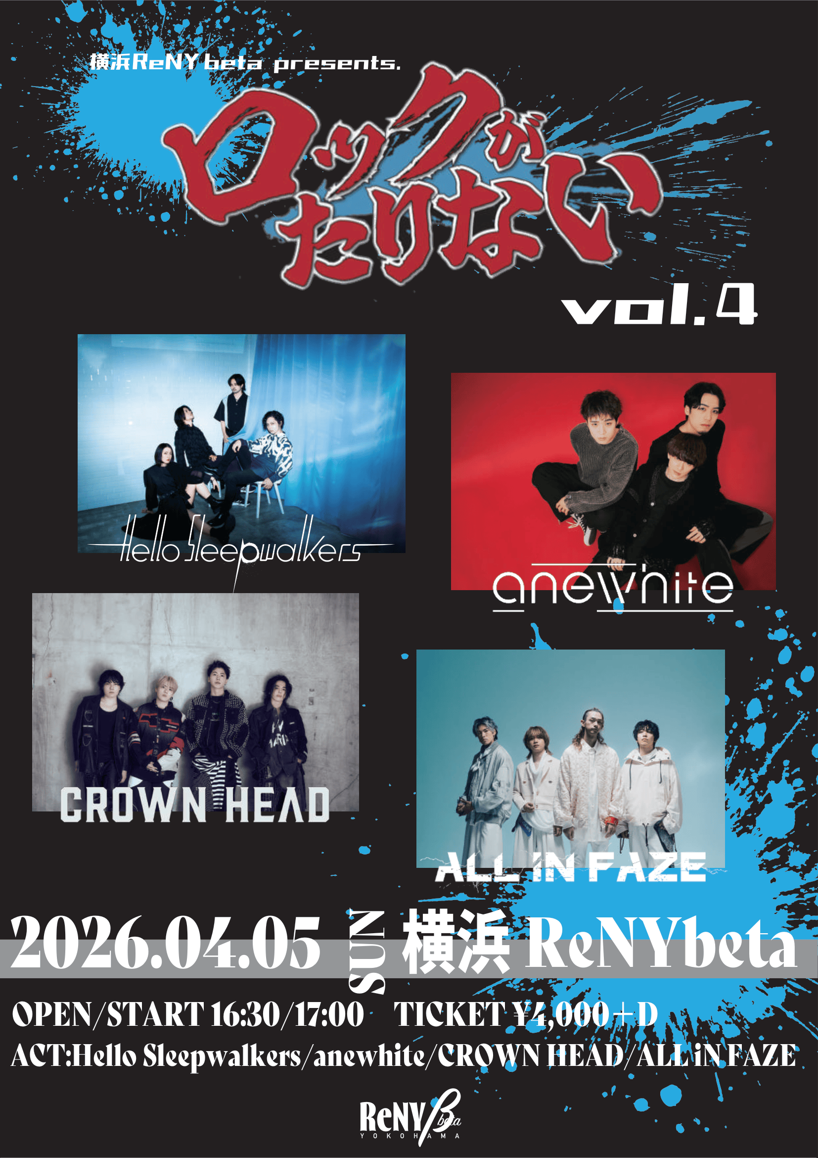 2026.02.202026.4.5(Sun)開催 横浜ReNY beta presents ロックがたりない vol.4にHello Sleepwalkers出演決定! -